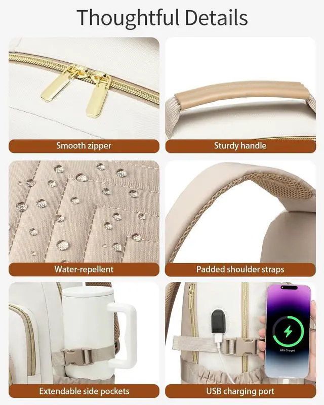 Go: The work backpack has a USB charging port on the side pocket, which is super convenient for charging your phone while you're commuting (power bank is not included) ^^ Carry-on Backpack, Travel