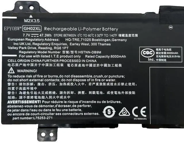 (Note: HP Chromebook 11 G8 EE laptop have 2 batteries of type (GH02XL 47.3W h & GB02XL 47.3W h), and GH02XL 47.3W h is suitable for Chromebook x360 14B Series, but not suitable for HP Chromebook 14B Series, you can open the back of the laptop to check the original battery model, please make sure your original battery is the same as the picture before ordering) ^^ Purchase Skills Please open the back cover of the laptop before ordering and make sure that the original battery model is consistent with the listing. After getting the battery, please install the battery correctly, make sure that the battery connector is firmly connected to the laptop motherboard, and use the original charger to charge the laptop. Discharge the new battery to 5% (not 0%), then charge and cycle 3-4 times to wake up the new battery. ^^ EPYOBW Promise All EPYOBW's batteries are certificated by UL/CE/FCC/RoHS. Our batteries are tested by strict quality control standards to ensure that the capacity is true, stable current, low self-discharge. And we also have short circuit, overheat, and overload protections.