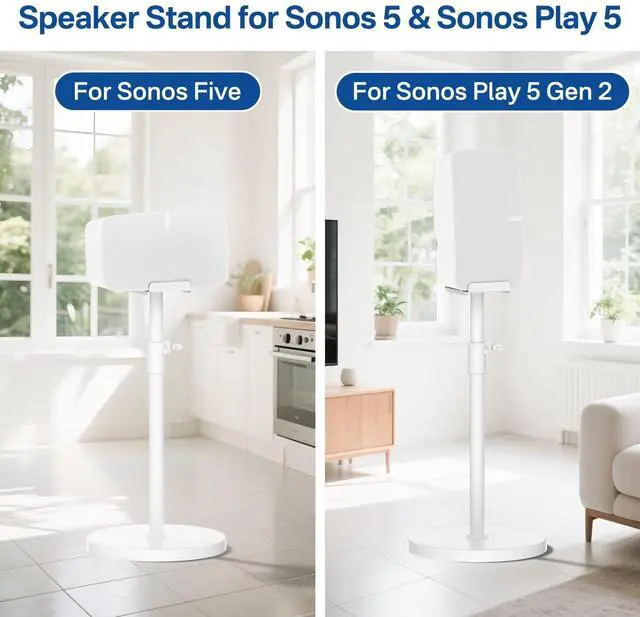 Sonos Play: 5 Gen 2 speakers. The heavy duty speaker stand for Sonos Five securely hold your speaker vertically or horizontally for immersive surround sound in any home theater setup.