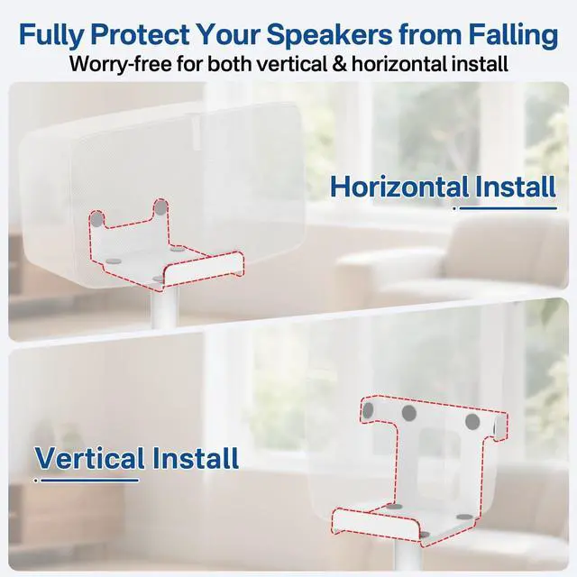 ^^ Dual Mounting Options: Choose how you want to place your speaker: vertically or horizontally. This floor stand for Sonos Play 5 speaker stand comes with 2 mounting styles and includes all the screws and tools needed for a quick and easy setup. A detailed manual ensures hassle-free installation, even for first-time users.