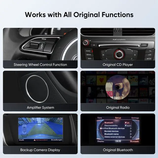 All Original Functions: MMI System, Original Audi Sound System, Original Radio, CD Player, Bluetooth, Backup Camera Display, Steering Wheel Control Function etc ^^ Professional