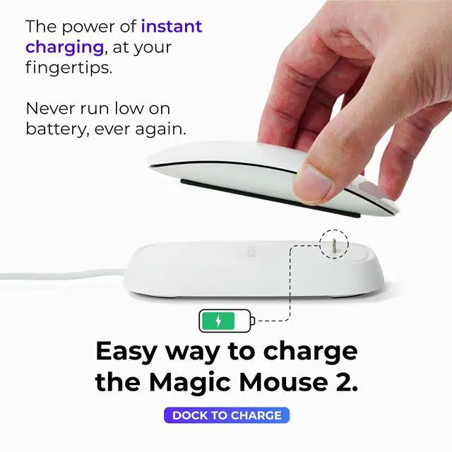 COMPATIBLE WITH MAGIC MOUSE 2 - The perfect accessory for the Magic Mouse 2. Works with all Magic Mouse 2 models from 2015-2022 with Lightning connector.