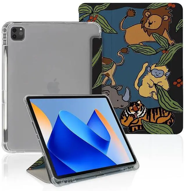 Tropical Animals Lion Giraffe Case Compatible with IPad 9th 8th 7th Generation 10.9 Inch 2021/2019/2018,Funny Cover with Trifold Stand + Pencil Holder for Boys Girls,iPad Pro 11inch 2024
