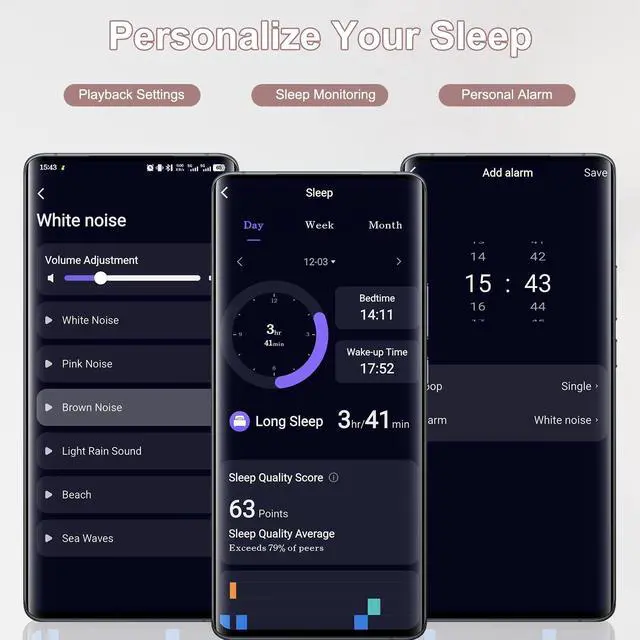 Smart Sleep Mode Create Your Own Quiet Night: Once Sleep Mode is activated, the sleeping earbuds automatically turn off voice assistants, call ringtones, and system notifications, allowing your night to return to true silence. Through the Zemyee Life app, You can choose your preferred white noise from the built-in white noise.