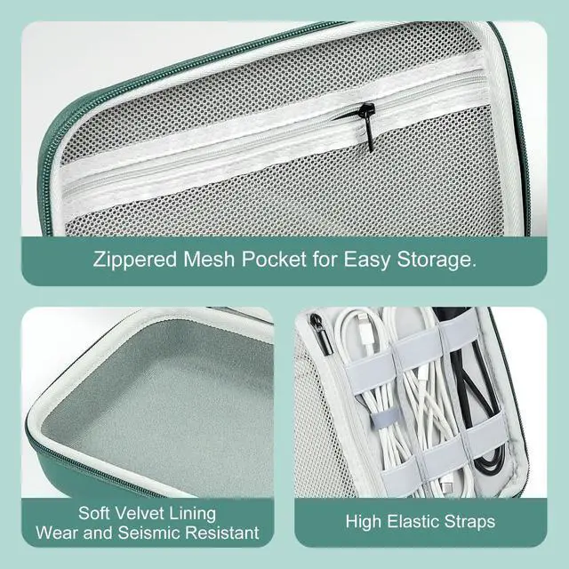 layer storage bag outsize: 9.84 * 7.08 * 3.54 inches, insize: 9.25 * 6.3 inches. Cable Storage Bags also have various color designs, you can choose different colors and specifications of digital storage bag according to your needs, so that your items can be better classified and placed. ^^ High Quality MaterialsElectronic accessories storage case is made of shockproof EVA hard shell and micro-fleece lining, which can effectively provide shockproof and crush resistance. And the external soft EVA material can provide waterproof function, better protecting your electronic accessories. ^^ DIY & Large CapacityDigital storage bag has 3 removable, there are 6 different assembly methods that you can arrange according to your own needs, making your items more orderly and orderly. ^^ Practical and ConvenientElectronics organizer travel case is equipped with a sturdy EVA carrying strap on the outside, making it more comfortable to use. In addition, the smooth zipper allows you to open the storage bag and retrieve items at any time. Portable cable storage bag is suitable for travel, work and other scenarios. ^^ Warm TipsPortable EVA carrying case storage bag only, it doesn't include any electronic devices and accessories! If you have any questions about this case, please contact us with email or support email, and we will resolve your issue.