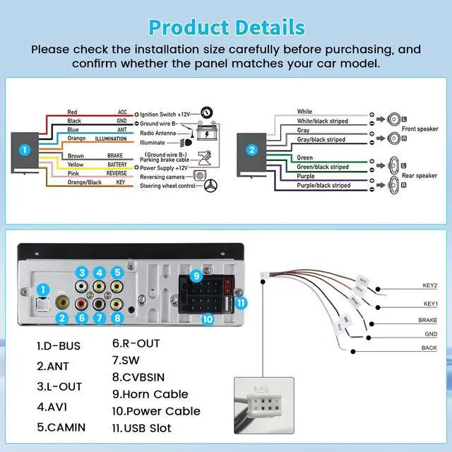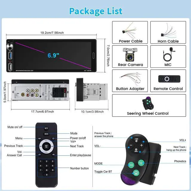 MirrorLink]: The single din capacitive touchscreen has been upgraded to 1024x600 Full HD for a crisp viewing experience. It also supports IOS/Android MirrorLink, allowing you to mirror your cell phone screen on the radio's display and use mobile apps, music, videos and more ^^ [Equipped with FM/RDS/EQ]Radio with high-quality stereo, which can search channels in full-automatic ways, semiautomatic way and acurate adjustment wayListen to music, newsletters and traffic information anytime, anywhere. The EQ sound effect function allows you to adjust the equalizer settings of the audio output for better sound quality ^^ [Multi-function Interface & 12 Colorful