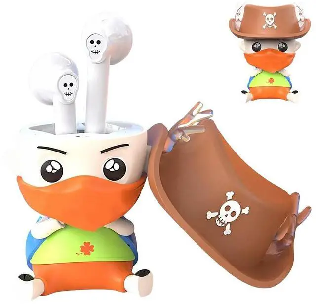 Add fun to your listening experience with these adorable pirate reindeer fun cowboy themed headphones! Half in ear design, wearing a brown denim hat adorned with pirate badges, playful style paired with orange bandana and cheerful green and blue accents. Magnetic detachable hat and deer antlers that glow when charging, full of fun. They support wireless B1uetooth 5.0 connection (coverage up to 33 feet), equipped with a 40mm dynamic driver unit, capable of presenting clear sound, with a sensitivity of 85 decibels and an impedance of 32 ohms. The built-in charging compartment provides 3 charging times, with a charging time of 1 hour and a full charge playback time of about 3-4 hours.