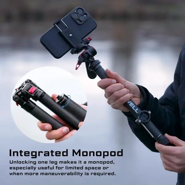 ^^ Monopod Conversion Feature: This tripod offers dual functionality. By simply unscrewing one of its legs, you can quickly transform it into a monopod. This feature is particularly useful for situations where space is limited or more mobility is required, like in crowded places or uneven terrain where setting up a tripod might be challenging.
