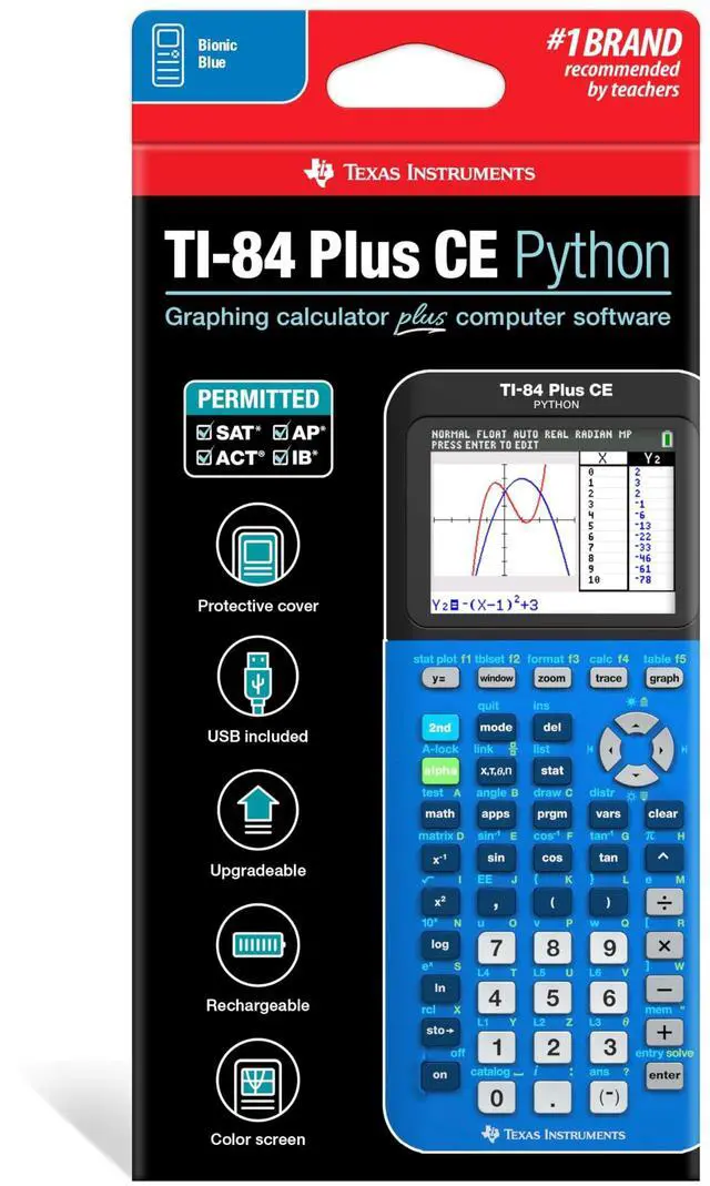 Texas Instruments TI-84 Plus CE Color Graphing Calculator, Bionic Blue Small