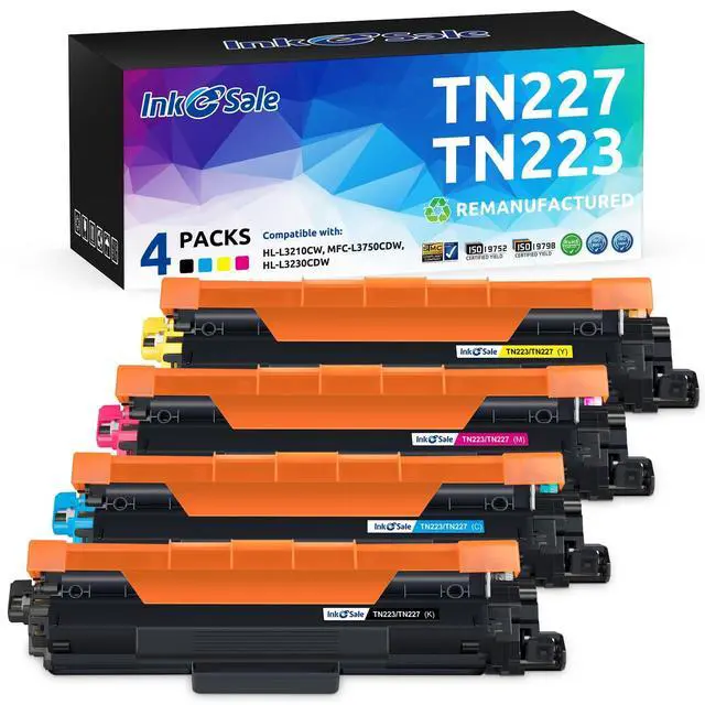 ^^ What You Get: 4 pack of INK E-SALE TN227 TN-223BK/C/M/Y toner cartridges (1 black / 1 cyan / 1 magenta / 1 yellow) and 1 user guide.
