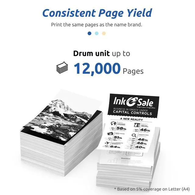 Estimated page yield: 2600 pages per TN-660 toner cartridge and 12000 pages per DR-630 drum unit at 5% coverage (Letter/A4) ^^