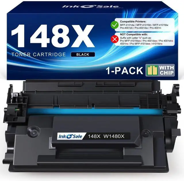 Important Note: This product is not compatible with HP Pro 4001ne, 4001dwe, 4001dne, MFP 4101dwe, 4101fdne, 4101fdwe printers. Please confirm your printer model before placing an order. ^^ [High Yield] Each Black 148X can print 10, 200 Pages at 5% coverage (Letter/A4) ^^ [Upgraded Version] The INK E-SALE upgraded version 148X W1480X toner cartridges are adapted to the newest firmware. ^^ [Attention] Please do not touch the chip during installing the toner cartridges.