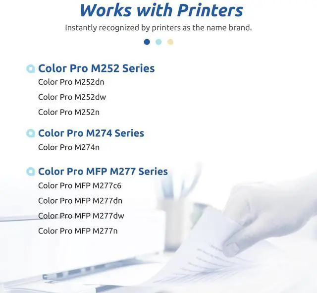 HP Printers: HP Color Pro M252 Series M252dn M252dw M252n; HP Color Pro M274 Series M274n; HP Color Pro MFP M277 Series M277c6 M277dn M277dw M277n Printers.