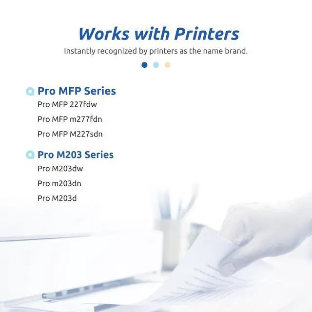 Compatible with Printers: HP Pro M203 Series M203d / M203dn / M203dw; HP Pro M227 Series MFP M227fdn / MFP M227fdw / MFP M227sdn Printer. ^^ We care about your needs and we strive to provide cost-effective products for you.