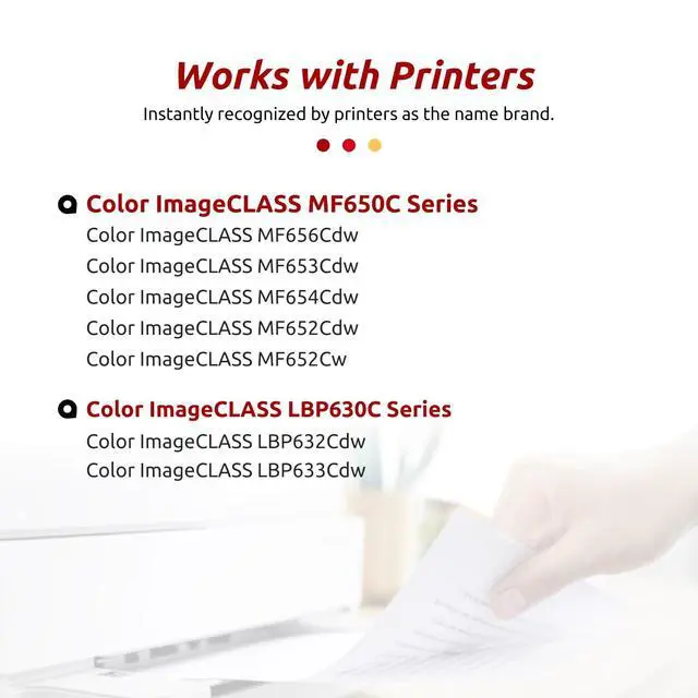 Toner Cartridge: 3, 130 Pages per Black Toner Cartridge based on 5% Coverage (letter/A4). ^^ Compatible with Canon Color imageCLASS LBP630C Series LBP632Cdw LBP633Cdw Printer; Canon Color imageCLASS LBP650C Series MF652Cdw MF652Cw MF653Cdw MF654Cdw MF656Cdw Series Printer.