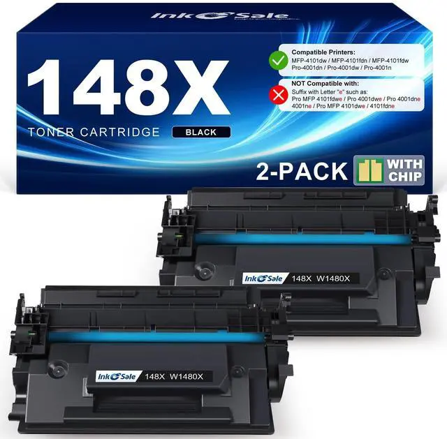 Important Note: This product is not compatible with HP Pro 4001ne, 4001dwe, 4001dne, MFP 4101dwe, 4101fdne, 4101fdwe printers. Please confirm your printer model before placing an order. ^^ [High Yield] Each Black 148X can print 10, 200 Pages at 5% coverage (Letter/A4) ^^ [Upgraded Version] The INK E-SALE upgraded version 148X W1480X toner cartridges are adapted to the newest firmware. ^^ [Attention] Please do not touch the chip during installing the toner cartridges.
