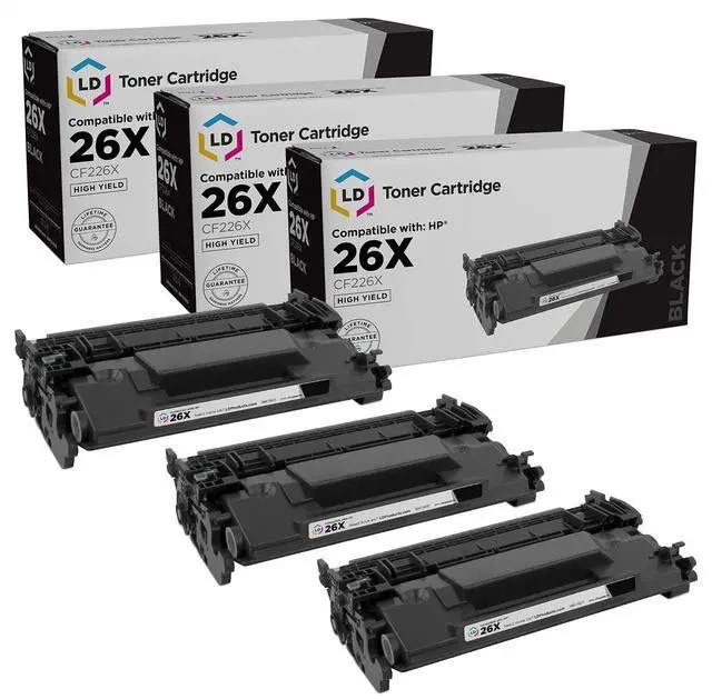 Compatible Replacements Included: 3 Pack CF226X 26 Black High Yield Toner Cartridges ^^ Delivers 9, 000 rich black pages, Average cartridge page yield in accordance with ISO 19755 ^^ These are the high yield version of CF226A toner cartridge ^^ Store-quality photos. Deliver vivid, crisp text and graphics