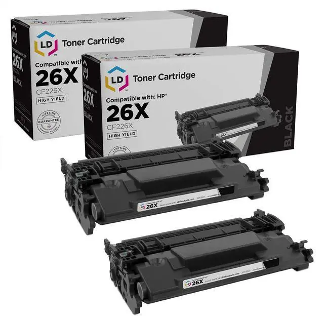Compatible Replacements Included: 2 Pack CF226X Toner Cartridge High Yield Black ^^ Delivers 9, 000 rich black pages, Average cartridge Page Yield* in accordance with ISO 19752. *at 5% coverage (ISO/IEC standard) ^^ These are the high yield version of CF226A compatible toner cartridge ^^ Please contact us first with any product issues. We want all of our customers to be happy because happiness matters.