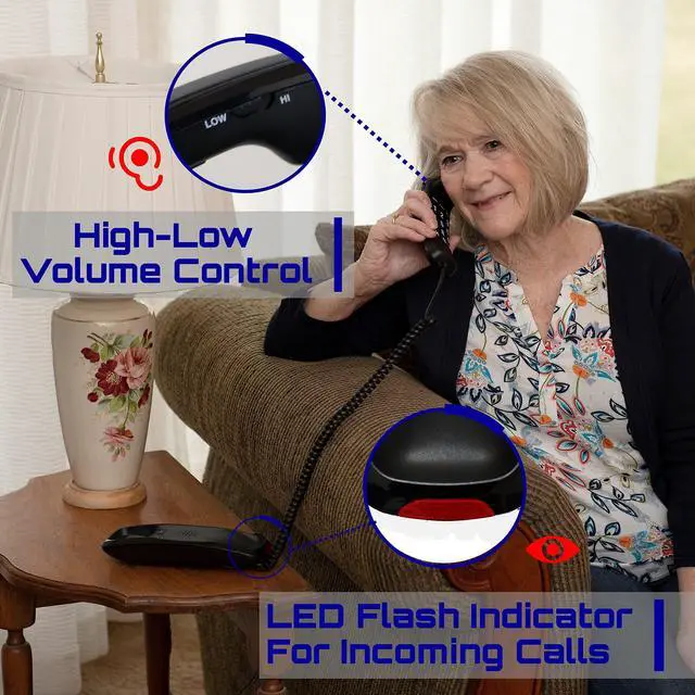 SIMPLE DESIGN: Our Tyler corded phone has been designed for non-technical ease of use for all. Clear large buttons, mute, flash, redial simple. Attach phone jack to phone, plug in the phone jack in the wall outlet and your ready to go. No charging no battery's no headache. Adjust ringer and phone volume with a flick of a finger. Ready, set, call!