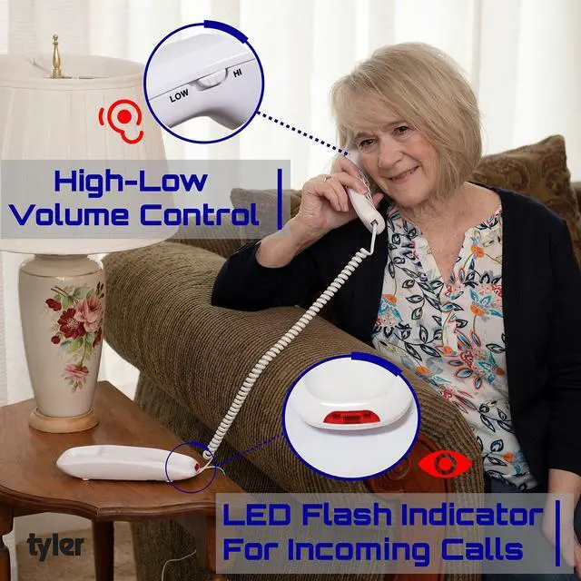 SIMPLE DESIGN: Our Tyler corded phone has been designed for non-technical ease of use for all. Clear large buttons, mute, flash, redial simple. Attach phone jack to phone, plug in the phone jack in the wall outlet and your ready to go. No charging no battery's no headache. Adjust ringer and phone volume with a flick of a finger. Ready, set, call!