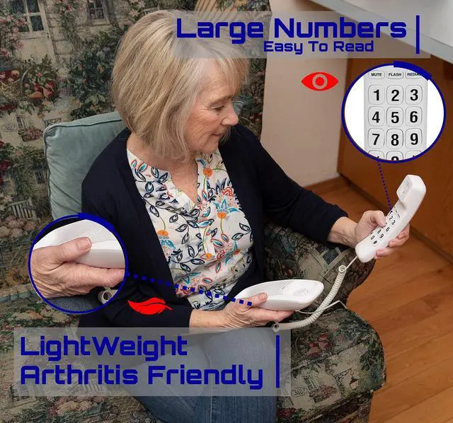 FUNCTIONALTIY: Fully equipped with LED call indicator, flash, mute, redial functions. Designed with clear large buttons for visually impaired for ease of use. Simple call volume switch on handset and ringer volume under the base. Comes with two sockets for wall mounting (screws not included).