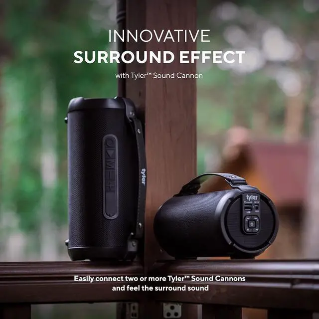 FEEL THE POWER: Our Tyler Bluetooth speaker comes equipped with 2.5" tweeter capable to product 100 watts of peak power and amplify 50W RMS at 4 OHM that provides a surround stereo sound production and extended bass so that you can feel your music.