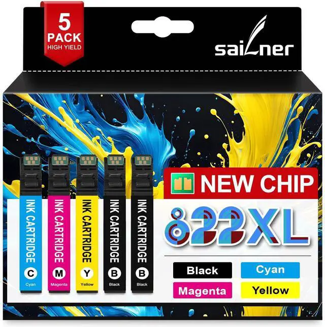SAILNER remanufactured high yield ink cartridges replacement for Epson 822XL ink cartridges combo pack offer up to 1, 100 pages per cartridge (black and color) at 5% coverage. Perfect for Epson WorkForce WF-3820, WF-3823, WF-4820, WF-4830, WF-4833, and WF-4834 printers. Save on printing costs without compromising quality. ^^ Replacement for 822xl Printer Ink Epson High Page Yield: Up to 1100 pages per black 822XL ink cartridges and 1100 pages per color 822XL ink cartridges (Letter/A4 at 5% coverage) ^^ Replacement for Epson 822XL Ink Cartridges