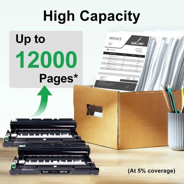 High Yield: Up to 12, 000 page per drum DR730 at 5% coverage by standard A4 paper ^^