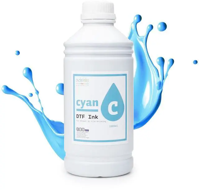 CIS Inks Premium DTF Ink Bottle Refill Set 1000ML- Direct to Film Heat Transfer Printing, Conversion Kit, Compatible w/DTF Film-Cyan