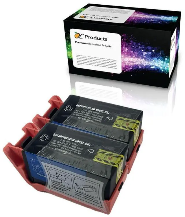 OCProducts Remanufactured Replacement for HP 906XL Black Ink Cartridge 2 Pack.