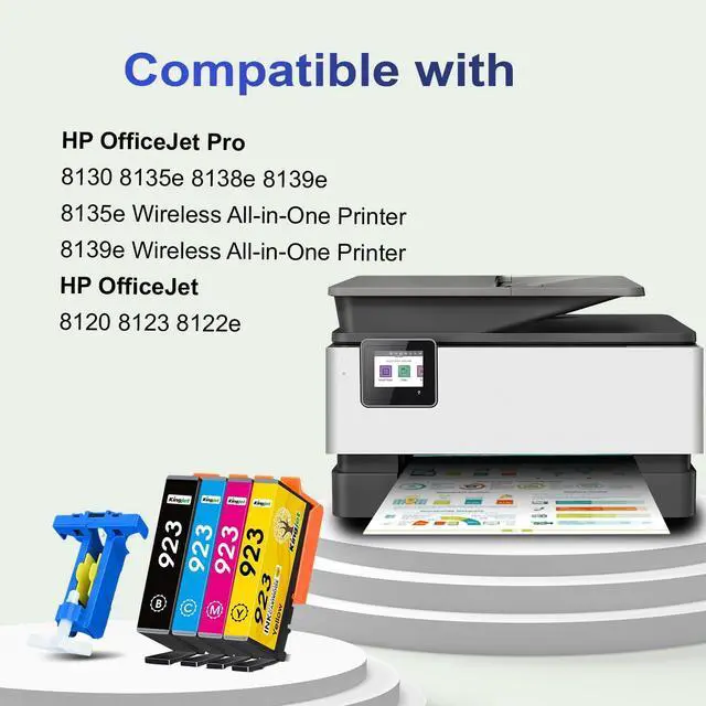 Compatible Printers: 923 ink cartridges for hp printers work for HP OfficeJet Pro 8130e 8120e 8135e 8138e 8139e 8122e 8124e 8125e 8132e 8134e; Work for OfficeJet Pro 8120 8122 8124 8125 8130 8132 8134 8135 8138 8139 Series Printer. ^^ No ChipsOur 923 ink cartridges combo pack is without chip, and you need to keep the old chips and install them to drive the whole set of 923 ink cartridges. The ink cartridges equipped with a chip remover tool and instruction, easy to operate and use.