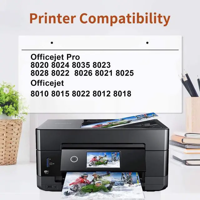 YellowPage Yield: 1200 pages per black cartridge & 900 pages per color cartridge @ 5% coverage ( A4 paper ) CharacteristicNew Design to prevent corrosion and printhead clogging, ensuring the best output quality and protect the printhead, which could extend their service time. newest version Chip help recognize ink cartridges and Show accurate Ink Level. ISO-9001 and ISO-140001 Certificate Approved factory. made High-Quality Ink Cartridge, Print with excellent color and crisp textPlease confirm your Printer Model before placing an order. Printer CompatibilityOfficejet Pro 8020 8024 8035 8023Officejet Pro 8028 8022 8026 8021 8025Officejet 8010 8015 8022 8012 8018NOT Compatible with *e Series Printers with HP+ ServiceWarm Tips1. If it shows "not recognized". please Remove the ink cartridge, install again. 2. When install the new cartridges into printer, the computer would promote "Non-Original", please click "Yes", then the printer can go on to print. 3. To improve the printing quality, its better to clean the printhead before printing with a new cartridge. 4. The seller provides 2 years of after-sales service, and the product has a 2-year shelf life. You're welcome to contact seller firstly if any problems happen.