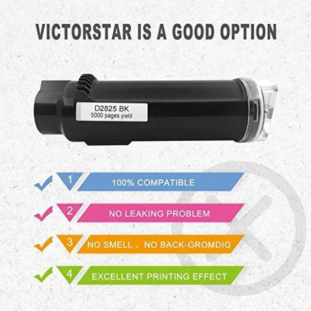 VICTORSTAR 4 Colors Compatible Toner Cartridges S2825cdn H625cdw H825cdwExtra High Yield 5000 Pages for Black & 4000 Pages for C M Y for Dell Color Laser Printers H625cdw H825cdw S2825cdn (4C)