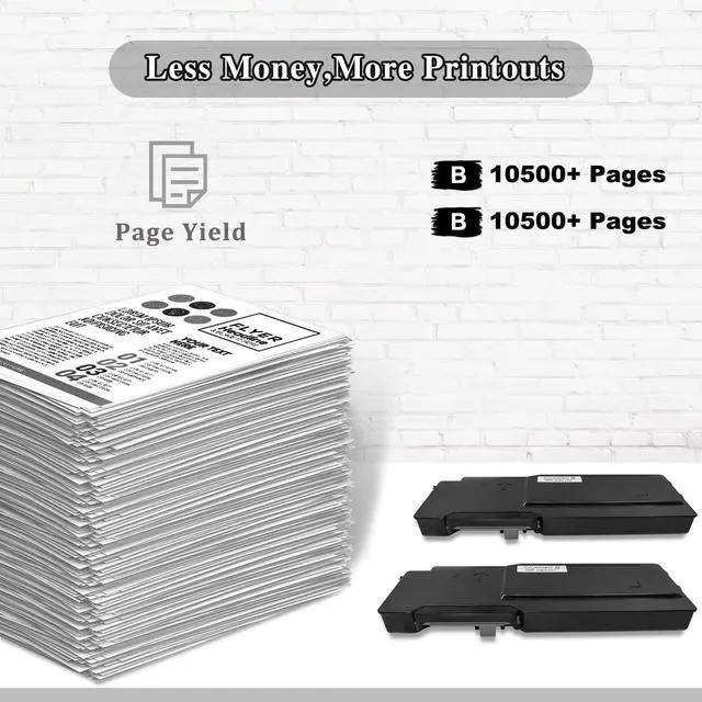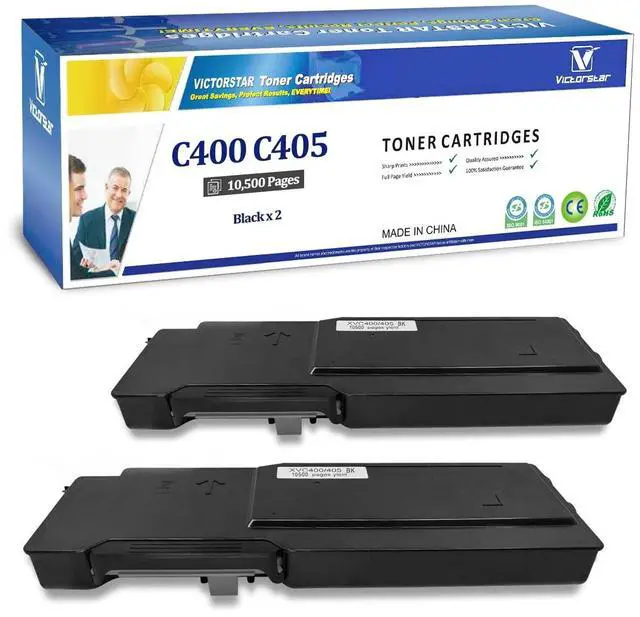 1. Item contentRemanufactured toner Cartridges C400 C405 2 Black. ^^ 2. Page YieldExtra High Yield, 10500 Pages for Black at 5% coverage, A4 paper, letter. (ISO/IEC standard). ^^ 3. Compatible with printersXEROX Veresalink C400 C400n C400/N C400dn C400/DN, XEROX Veresalink C405 C405n C405/N C405dn C405/DN MFP Color Laser Printers.. ^^ 4. ISO Quality Factory Our toner cartridges are manufactured with new components and are manufactured in the factory that meets ISO 9001 quality management, ISO 14001 environmental management and ROHS environmental standards. We specialize in producing compatible toner cartridges with 20 years of technical experience.