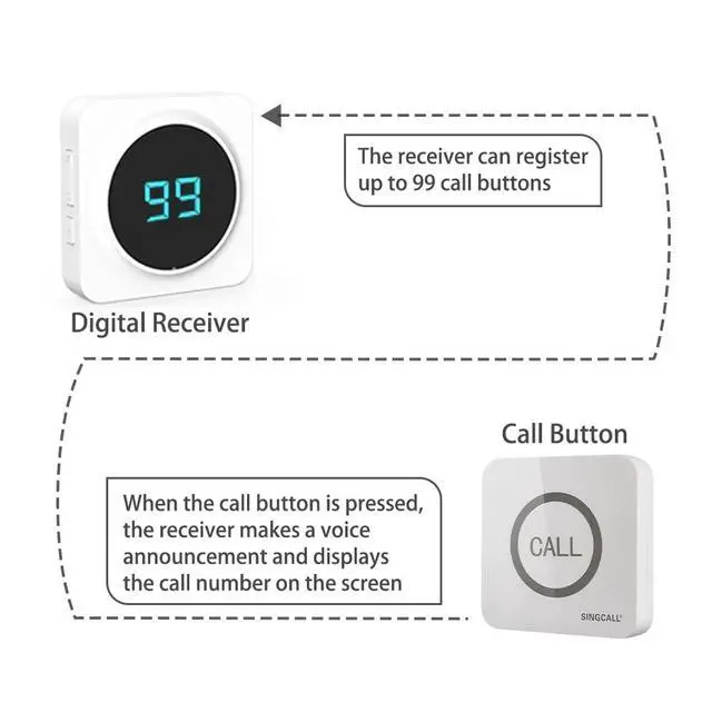 Practical: Wireless receiver most support 99pcs wireless pagers, and the receiver integrates up to 31 ringtones, 2-language (English and Japanese) broadcast and supports LED display 24-hour time. Its easy to configure pagers, delete pagers, adjust volume and delete all number. It is definitely a good helper for your business ^^