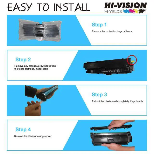 ^^ I: HI-VISION HI-YIELD product is packaged in separate box, suitable for long-term storage, to avoid product damage or toner leakage and other problems.
