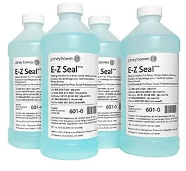 Pitney Bowes E-Z Seal Sealing Solution for Postage ^^ 4-Pint Size Bottles ^^ 16 oz per Bottle ^^ Seals Envelopes Consistently and Keeps Them Tightly Sealed