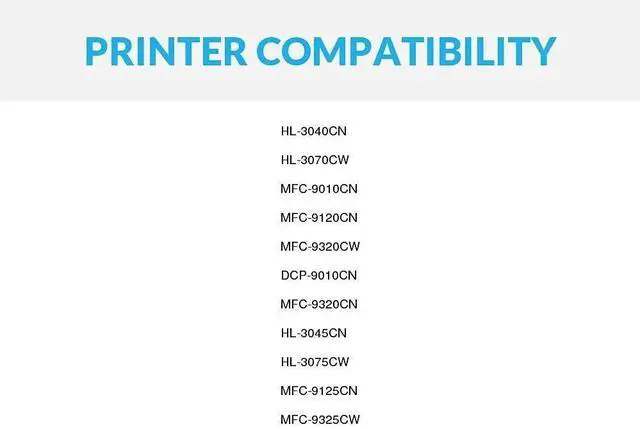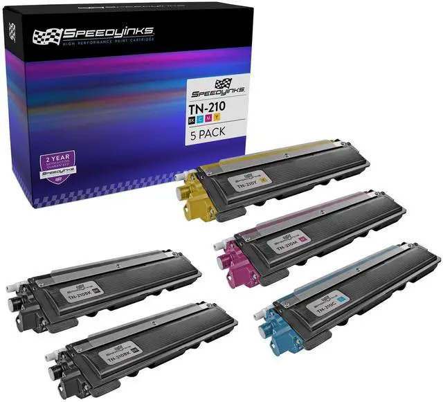 This product includes: 5-Pack (2 Black, 1 Cyan, 1 Magenta, 1 Yellow) Brother TN210 TN-210 TN210 Compatible Toner Cartridge Replacement ^^ All compatible replacement cartridges are quality tested to ensure long-lasting use and bold, vivid print on every page. ^^ Compatible with Printer Models Brother HL-3040CN, Brother HL-3070CW, Brother MFC-9010CN, Brother MFC-9120CN, Brother MFC-9320CW, Brother DCP-9010CN, Brother MFC-9320CN, Brother HL-3045CN, Brother HL-3075CW, Brother MFC-9125CN, Brother MFC-9325CW ^^