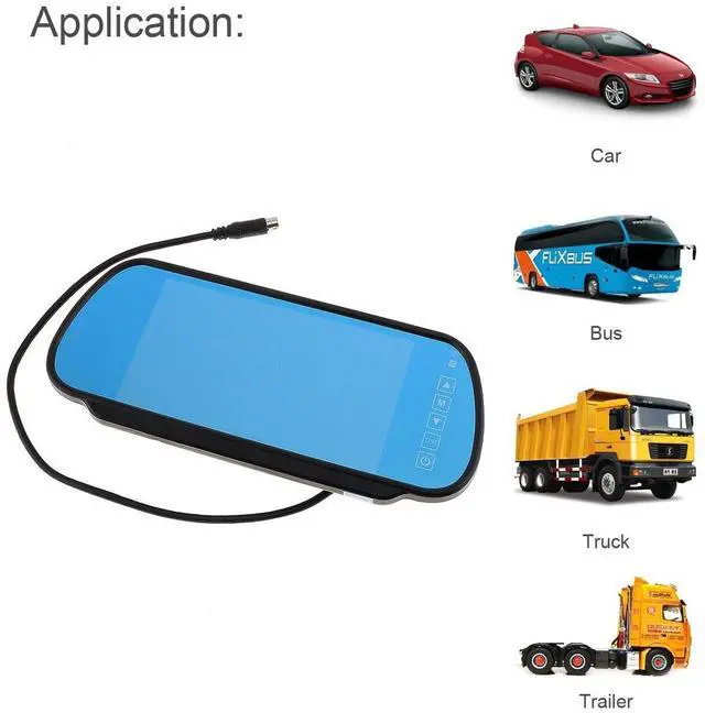 • 7 inch 16:9 TFT LCD widescreen rearview mirror monitor with 800(W) x RGB x 480(H) Pixels, and High quality PAL / NTSC TV system.