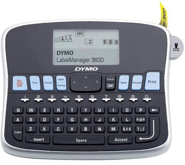 Product DescriptionPowered by a long-lasting rechargeable lithium-ion battery, the LabelManager 360D Label Maker is easy-to-use and eliminates the inconvenience of AA batteries. This desktop label maker lets you print up to ten copies of the same label and prevent repeated work with a ten-label memory and save text feature. Enter text quickly and naturally with the familiar computer-style keyboard, and use special function keys for fast access to punctuation marks, currency, and other special symbols. There are 30+ ways to format text including 3 font styles to create custom labels suited for almost any home or office labeling job.