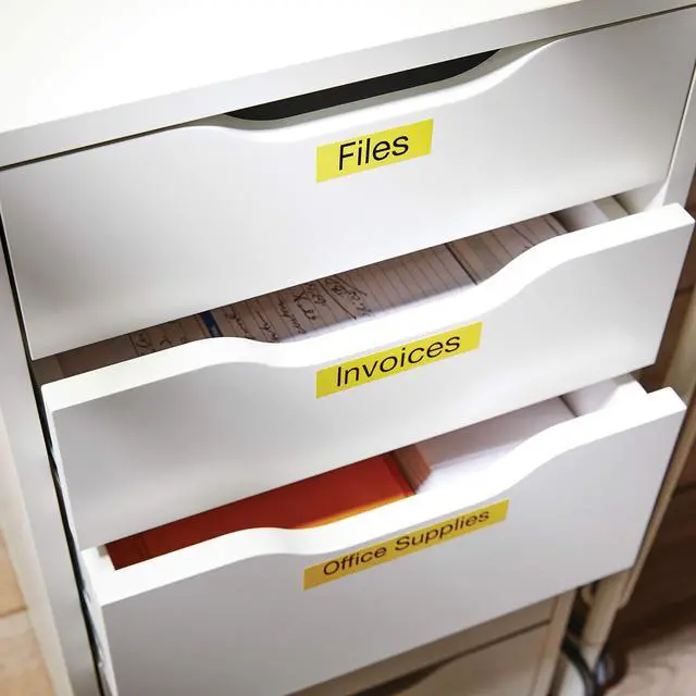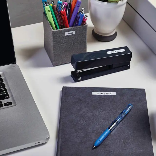 From the ManufacturerLabel maker offers a large 1-1/2" x 2-3/4" screen with two lines of label text. Graphical display lets you see text effects on screen before you print. Print up to 10 copies of the same label. User interface displays all menu items without scrolling and includes intuitive icons for formatting options. Familiar QWERTY keyboard speeds text entry. Label printer offers a nine-label memory, save-text feature and quick access to special symbols including punctuation and currency. Customize labels and add emphasis by choosing from three font styles, seven font sizes, one of the many styles, and one of eight different box styles or underline.