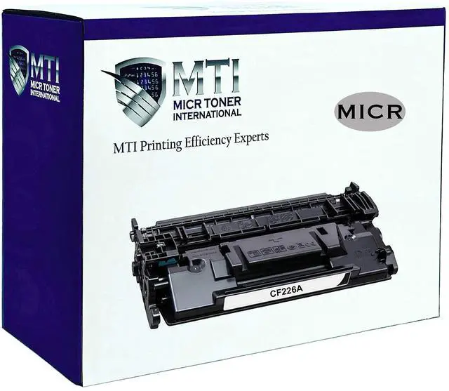 Compatible Printers: The MTI Compatible HP 26A HP 26X MICR cartridge is designed for HP LaserJet Pro M402d M402dn M402dne M402dw M402n M426dw MFP M426fdn M426fdw printers. The MICR Toner International Advantage Better Quality And Support. The MTI Compatible HP 26A HP 26X MICR cartridge is ISO 9001 and 14001 certified and tested for performance. We know printing is important - thats why we have a U. S. based customer support team. Contact us with any technical or product issues and we will be happy to assist you. MTI High Yield Cartridges. MTI offers standard yield 26A MICR Toner and high yield compatible HP 26X toner cartridges. For up to 25% more prints, look for MTI Compatible HP 26X CF226X MICR. Printing Tips A common error is the non-genuine message. If this occurs with the MTI Compatible HP 26A MICR cartridge, press OK or Continue continuously to dismiss the message. The printer will resume your print job. Despite the extreme care we take in packaging, sometimes items are damaged during shipping and this can affect print quality. In this case, we immediately send an MTI Compatible HP 26A HP 26X MICR replacement.