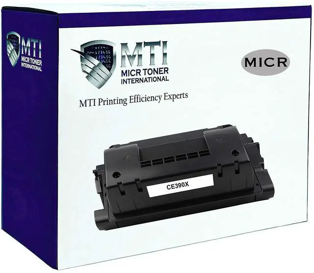 Compatible Printers: the MTI compatible HP CE390X is designed for HP Laser Printers M602dn M602n M602x M603dn M603n M603xh M4555f M4555fskm M4555h. The MICR Toner International Advantage Superior Support. We know printing is important - thats why we have a U. S. based customer support team. Lifetime Warranty. Contact us with any technical or product issues and we will be happy to assist you. Printing Tips A common error is the non-genuine message. If this occurs with the MTI compatible HP CE390X 90X MICR cartridge, press OK or Continue repeatedly to dismiss the message. The printer will resume your print job. If you order more than one cartridge, test them all upon receipt. Despite the extreme care we take in packaging, sometimes items are damaged during shipping and this can affect print quality. In this case, we immediately send an MTI compatible HP 90X MICR toner cartridge. Print Checks Like a Pro with MTI