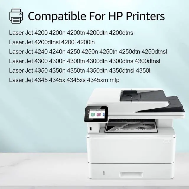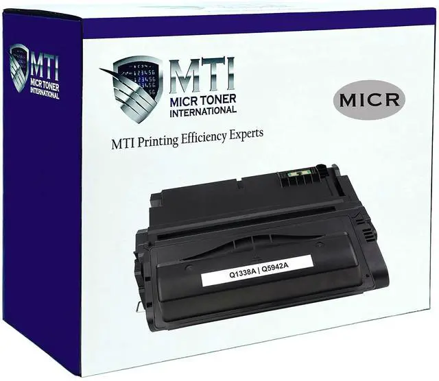 Compatible Printers: the MTI remanufactured HP Q1338A Q5942A is designed for HP LaserJet 4240 4240N 4250 4250DN 4250DTN 4250DTNSL 4250N 4250TN 4350 4350DTN 4350DTNSL 4350N printers. The MICR Toner International Advantage Superior Support. We know printing is important - thats why we have a U. S. based customer support team. Lifetime Warranty. Contact us with any technical or product issues and we will be happy to assist you. Printing Tips A common error is the non-genuine message. If this occurs with the MTI remanufactured HP Q1338A Q5942A cartridge, press OK or Continue repeatedly to dismiss the message. The printer will resume your print job. If you order more than one cartridge, test them all upon receipt. Despite the extreme care we take in packaging, sometimes items are damaged during shipping and this can affect print quality. In this case, we immediately send an MTI remanufactured HP 38A 42A MICR toner cartridge. Print Checks Like a Pro with MTI
