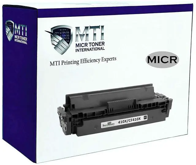 Compatible Printers: the MTI remanufactured HP CF410X is designed for HP Color LaserJet Pro M377dw M452dn M452dw M452nw M477fdn M477fdw M477fnw printers. The MICR Toner International Advantage Superior Support. We know printing is important - thats why we have a U. S. based customer support team. Lifetime Warranty. Contact us with any technical or product issues and we will be happy to assist you. Printing Tips A common error is the non-genuine message. If this occurs with the MTI remanufactured HP CF410X cartridge, press OK or Continue repeatedly to dismiss the message. The printer will resume your print job. If you order more than one cartridge, test them all upon receipt. Despite the extreme care we take in packaging, sometimes items are damaged during shipping and this can affect print quality. In this case, we immediately send an MTI remanufactured HP 305A MICR toner cartridge. Print Checks Like a Pro with MTI