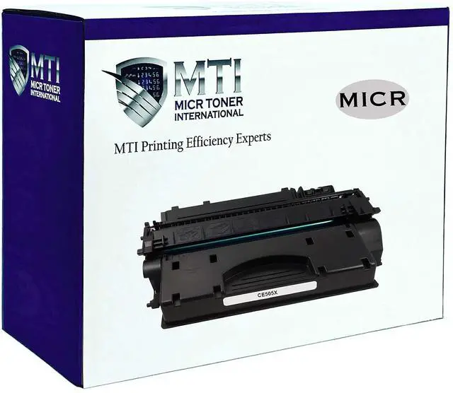 MTI MICR CE505X 05X MICR CartridgeThe MTI 05X MICR Toner Cartridge delivers high quality check printing for guaranteed bank acceptance. This cartridge prints 6, 500 checks at 1 per page, or 19, 500 checks at 3 per page. Compatible Printer ListThe MTI CE505X 05X MICR Cartridge is specifically designed for HP LaserJet P2055 P2055D P2055DN P2055X printers. MTI Quality AssuranceMTI MICR products are designed for professional check printing in office settings, where bank acceptance is vital. Our MTI MICR Cartridges deliver high-quality MICR output and excellent toner yield, at an exceptionally low cost per page.