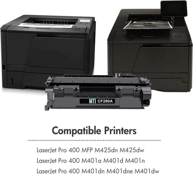 Compatible Printers: the MTI Compatible HP CF280A is designed for HP LaserJet Pro M401a M401dn M401dne M401dw M401n M425dn M425dw MFP printers.