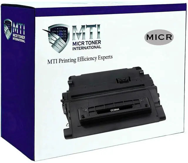 Compatible Printers: the MTI compatible HP CC364A is designed for HP Laser Printers P4014dn P4014n P4015dn P4015n P4015tn P4015x P4515n P4515tn P4515x P4515xm. The MICR Toner International Advantage Superior Support. We know printing is important - that's why we have a U. S. based customer support team. Lifetime Warranty. Contact us with any technical or product issues and we will be happy to assist you. Printing Tips A common error is the non-genuine message. If this occurs with the MTI compatible HP 64A CC364A MICR cartridge, press OK or Continue repeatedly to dismiss the message. The printer will resume your print job. If you order more than one cartridge, test them all upon receipt. Despite the extreme care we take in packaging, sometimes items are damaged during shipping and this can affect print quality. In this case, we immediately send an MTI compatible HP 64A toner cartridge. Print Checks Like a Pro with MTI