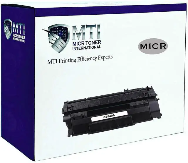 Compatible Printers: the MTI Compatible HP Q5949A is designed for HP 1160 1160Le 1320 1320n 1320nw 1320t 1320tn 3390 3392 printers The MICR Toner International Advantage Superior Support. We know printing is important - thats why we have a U. S. -based customer support team. Lifetime Warranty. Contact us with any technical or product issues and we will be happy to assist you. Printing Tips A common error is the non-genuine message. If this occurs with the MTI Compatible HP Q5949A 49A cartridge, press OK or Continue repeatedly to dismiss the message. The printer will resume your print job. If you order more than one cartridge, test them all upon receipt. Despite the extreme care we take in packaging, sometimes items are damaged during shipping and this can affect print quality. In this case, we immediately send an MTI compatible HP Q5949A 49A MICR toner cartridge. Print Checks Like a Pro with MTI