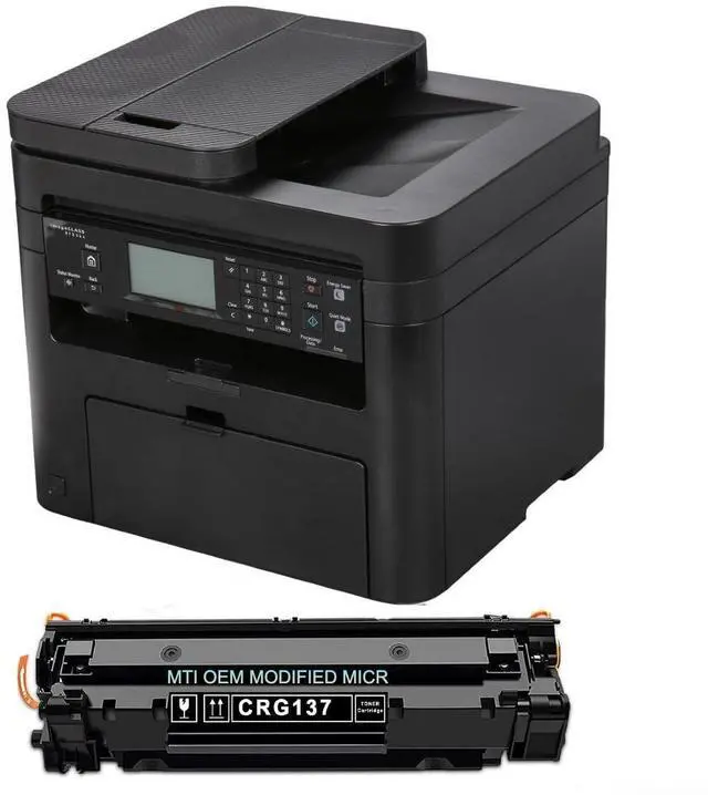IN THE BOX -- MF236n All-In-One Printer, 1 OEM Modified 137 MICR Toner Cartridge for printing small business, payroll and personal checks (preinstalled in printer). All in one functionality allows you to print, scan, copy and fax ^^ PRINT PROFESSIONAL CHECKS -- OEM Modified CRG 137 MICR Cartridge (Starter Yield 1, 700 Yield - prints 5100 checks at 3 per page) manufactured by expert technicians with superior magnetic ink for guaranteed bank acceptance ^^ FAST PRINT SPEEDS -- Print up to 24 pages-per-minute. Print, scan, copy and fax capabilities help you accomplish all necessary tasks with just one machine ^^ PRINTER DETAILS Speedy performance and minimal maintenance.
